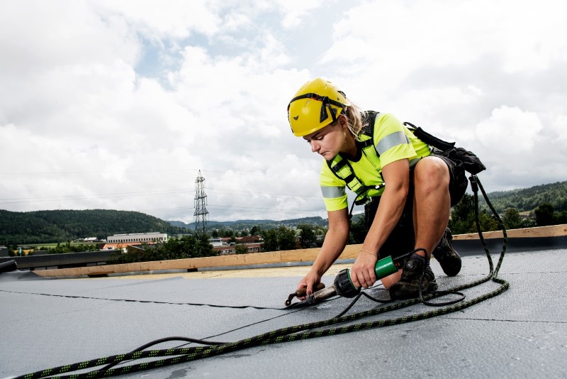 Haluaisimme nähdä enemmän naisia perinteisesti miesvaltaisissa tehtävissä, kuten koneenkäyttäjinä ja kattotyöntekijöinä. Kampanjoissamme, joilla pyrimme rekrytoimaan lisää ammattitaitoisia kattotyöntekijöitä ja oppisopimuskoulutettavia, olemme esitelleet Ingvild Fellheimia Tønsbergin toimipisteestämme.